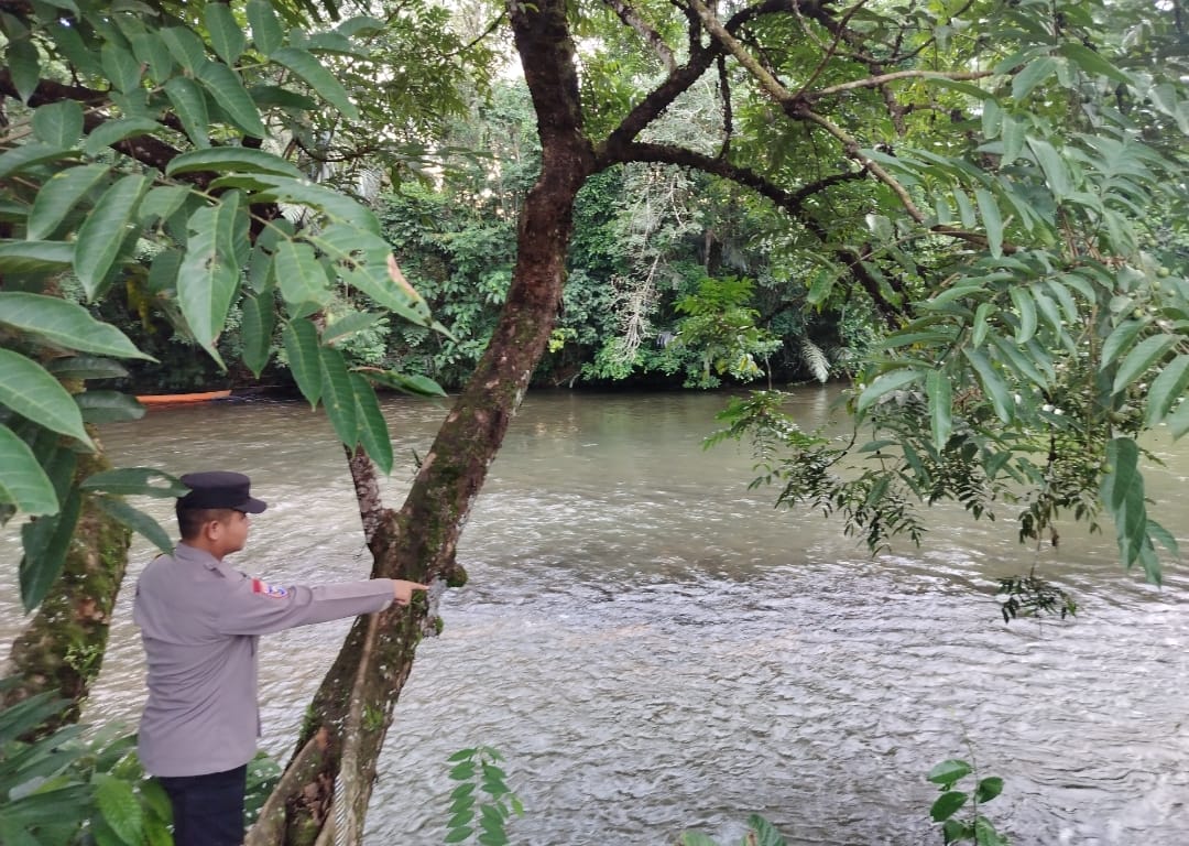 Lamandau – Polsek Delang, Piket Polsek Delang melakukan kegiatan rutin pengecekan debit air DAS Delang di TMA Kelurahan Kudangan RT.02 Kecamatan Delang, Selasa (16/12/25) Pagi